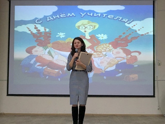 Большое спасибо Администрации школы и Профсоюзной организации за традиционную октябрьскую встречу, спасибо организаторам и художественным руководителям творческих объединений за качественную подготовку ребят. И особые слова благодарности хотим выразить Председателю Совета Депутатов муниципального собрания района Тёплый Стан Кузьменко Е.Н. за тёплые поздравления и вкусные подарки для ветеранов. С Днём Учителя, милые дамы! С Днём учителя вас, господа!