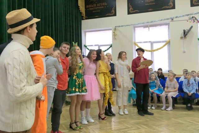 «Новогодняя палитра» - так называлась светлая, добрая, яркая зимняя сказка, сценаристами и постановщиками которой стали наши дорогие старшеклассники. Интересные сюжетные линии, красочные декорации и костюмы, зажигательные танцы, а главное – профессиональная актёрская игра ребят радует восторженных зрителей вот уже много-много лет. Огромное СПАСИБО всем создателям и участникам замечательного новогоднего представления! С Новым годом, дорогие друзья! С Новым 2019 годом!