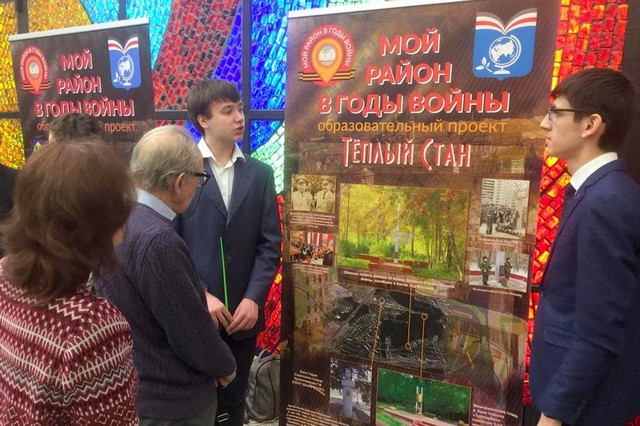 Ветеран педагогического труда нашей школы, заместитель председателя Совета ветеранов ВОВ - жителей района, полковник Перов Н.Ф. и учащиеся школы также достойно представили на конференции Тёплый Стан, рассказав о результатах поисковой работы, о памятных местах нашего района, о Музеях боевой славы в образовательных учреждениях, о памятниках и обелисках героям Великой Отечественной войны.