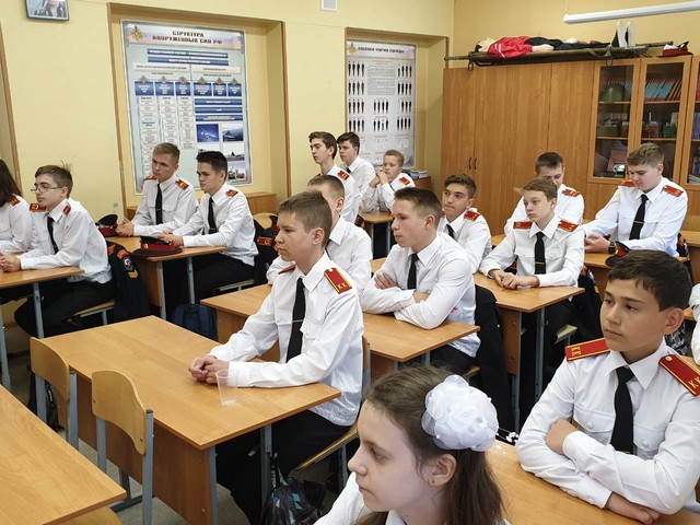2 сентября 2019 года первый урок, посвящённый 75-летию Победы в Великой Отечественной войне, для воспитанников кадетских 8К и 7К классов провёл Ветеран воздушно десантных войск генерал майор в отставке Федяев Олег Максимович. Председатель совета ветеранов 43 Армии Тарасов Виктор Григорьевич провёл урок мужества на базе музея.