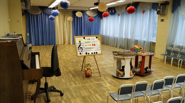 Музыкальные и спортивные залы в утреннее время используются для реализации основной программы дошкольного образования, во второй половине дня в этих просторных помещениях оказываются платные дополнительные услуги для дошколят: «Камертон», «У Лукоморья», «Детская ритмика» и «Здоровенок».