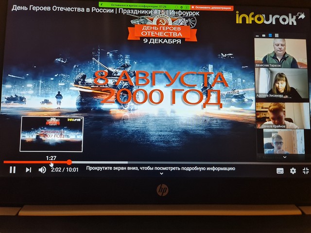 09 декабря 2020 года кадеты 7К и 9К классов участвовали в классном часе, посвящённом Дню Героев Отечества.