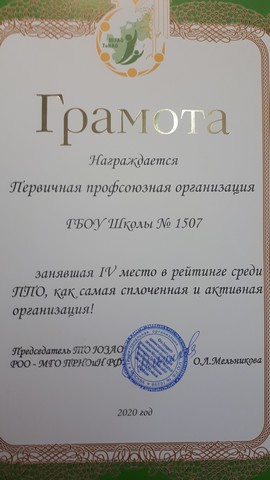 25.12.2020 Наша профсоюзная организация по итогам работы в 2020 году заняла 4-ое место в рейтинге первичных профсоюзных организаций ЮЗАО и ТиНАО.