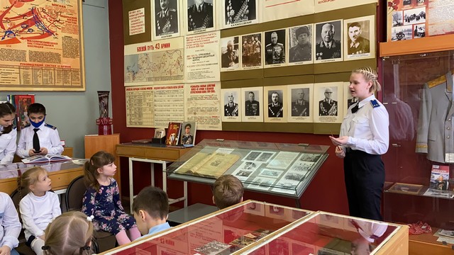 В преддверии Дней воинской славы России (76-ой годовщины Победы в Великой Отечественной войне, 80-летии начала Великой Отечественной войны и 80-летии парада на Красной площади в Москве 1941 года) 2 апреля 2021 в музее 43 Армии Великой Отечественной войны 1941-1945г.г. учащиеся 7 кадетского класса провели экскурсию для воспитанников старшего дошкольного возраста.
