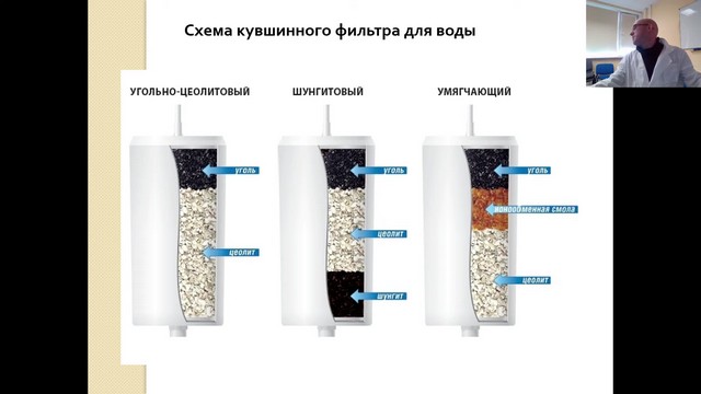 Доцент кафедры Промышленной экологии, к.т.н. Кузин Е.Н. рассказал о способах очистки воды в городских очистных сооружениях и в бытовых домашних фильтрах, показал, как очищается вода от примесей и загрязнений химическим методом коагуляции. К загрязненной воде добавлялись различные реагенты и демонстрировался процесс очистки. Конечно, таким образом очищать воду можно только в химической лаборатории, а дома нужно использовать бытовые фильтры.