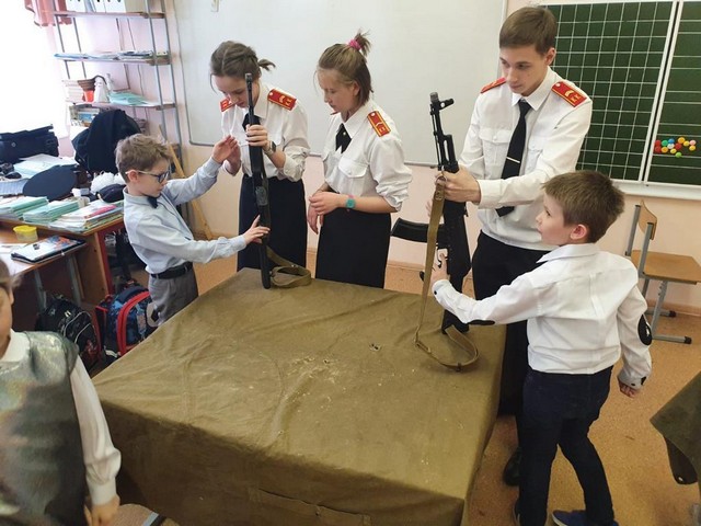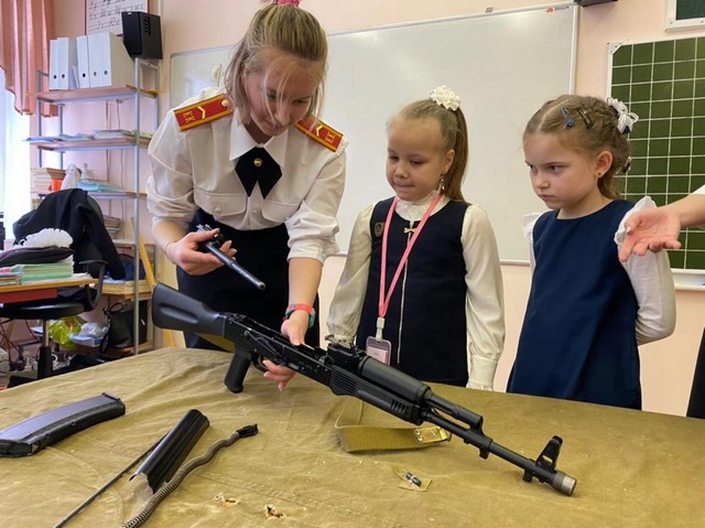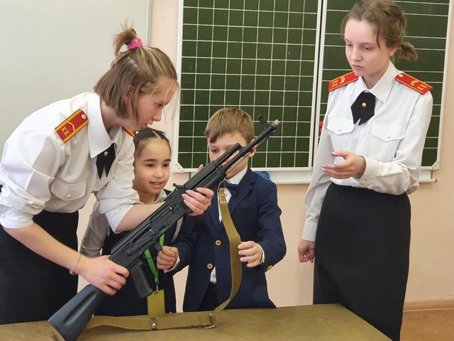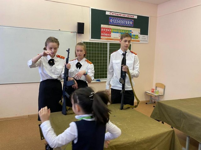 Во время занятий с младшими классами кадеты продемонстрировали свои навыки обращения с оружием.