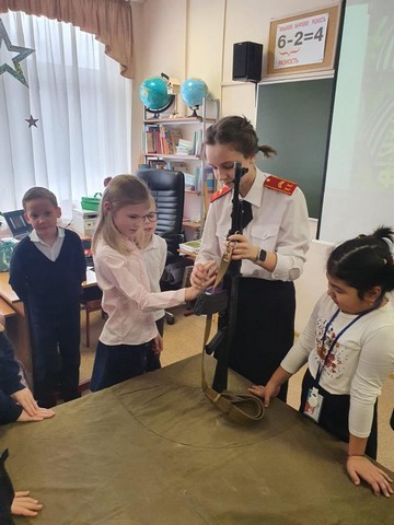 После показательного мастер-класса, ученики, с помощью кадет, попробовали сами разобрать и собрать ружье. Оказалось, это не так просто, но всем было интересно.