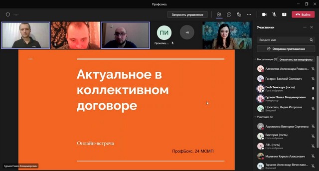 В рамках его разработки наши коллеги Гагарин Василий и Алексеева Александра в составе команды «ПрофБокс» провели 12.03.2022 онлайн-встречу «Актуальное в коллективном договоре», на которой разбирались различные ситуации «школы №0000» с опорой на ее коллективный договор. Участники, молодые педагоги ГБОУ Школы № 51, поработали как индивидуально, так и в командах, заработали очки и поборолись за призы!