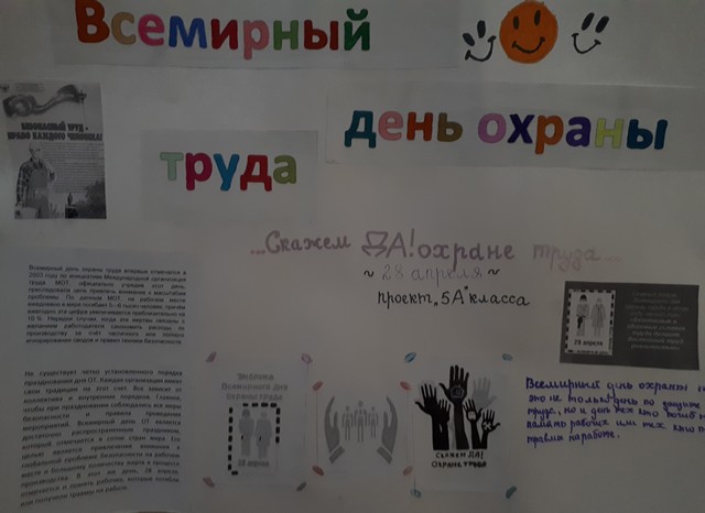 конкурс стенгазет об истории возникновения праздника Всемирного дня охраны труда, целях его проведения для обучающихся 5-7-ых классов;