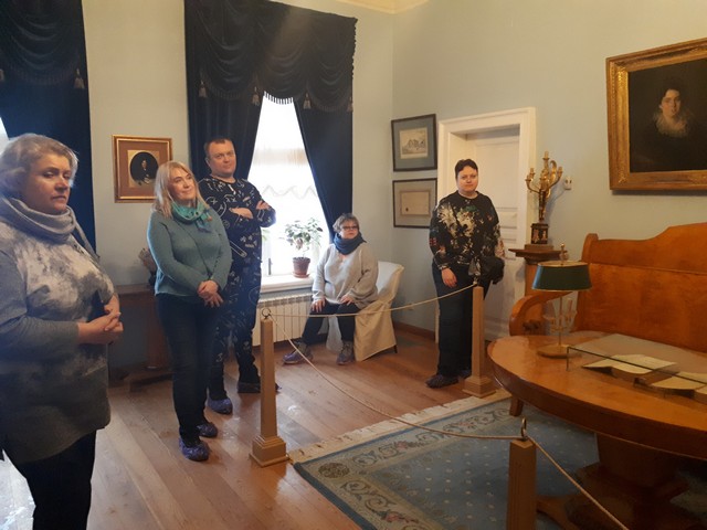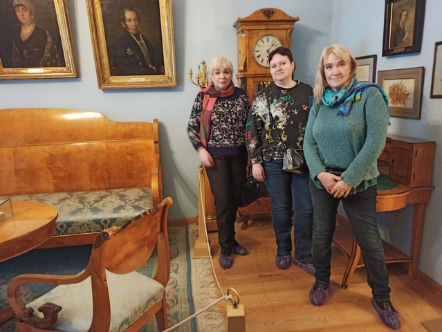 Они посетили удивительный дом, полный историй и подлинных вещей: здесь и неожиданный Саврасов, и сухопутный Айвазовский, и подлинный Тропинин, и посуда практически с Титаника, и диваны-жаба, и портрет "императора" Константина и не только, мемориальные вещи Тютчева, потрясающая библиотека с уникальными книгами. Практически все сохранено, как было при хозяевах. От этого было ощущение, что они вот-вот вернутся. Каждую деталь хотелось рассматривать и изучать. В Мураново побывали в уютной светлой домовой церкви во время проходившей там службы, и батюшка окропил всех святой водой.