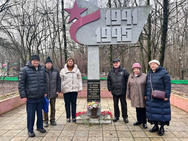 По традиции участники встречи возложили цветы к обелиску Памяти воинов 43 армии, погибших под Москвой, который установлен на территории нашей школы в 1978 году.