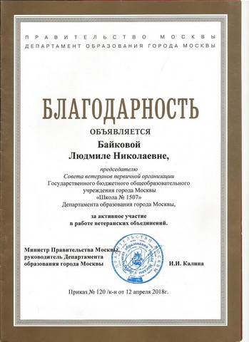 Дорогие коллеги! Поздравляю всех с праздником Великой Победы! Эта благодарность всему Совету ветеранов педагогического труда Школы № 1507. Здоровья, любви, благополучия, взаимопонимания и мирного неба над головой!