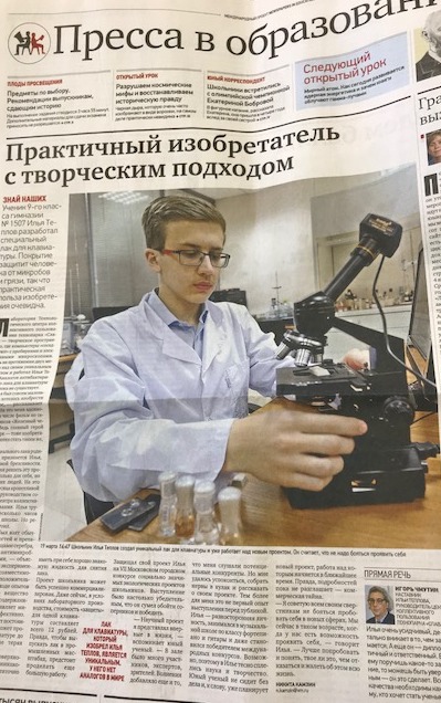 Ученик 9-го класса школы № 1507 Илья Теплов разработал специальный лак для клавиатуры. Покрытие защитит человека от микробов и грязи, так что практическая польза изобретения очевидна.
