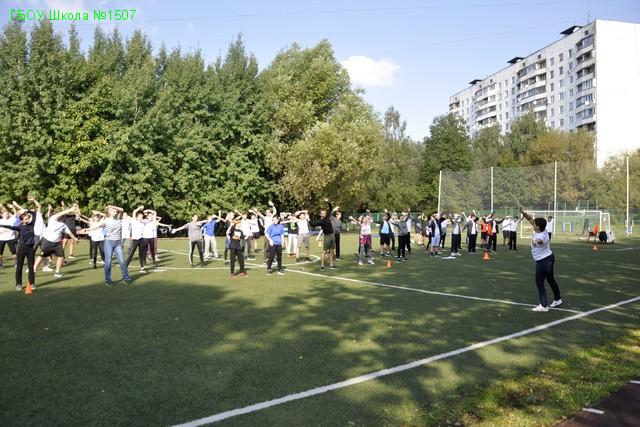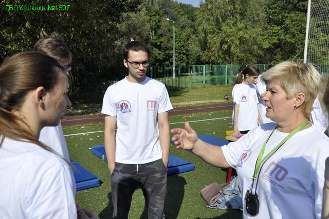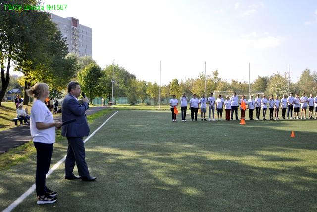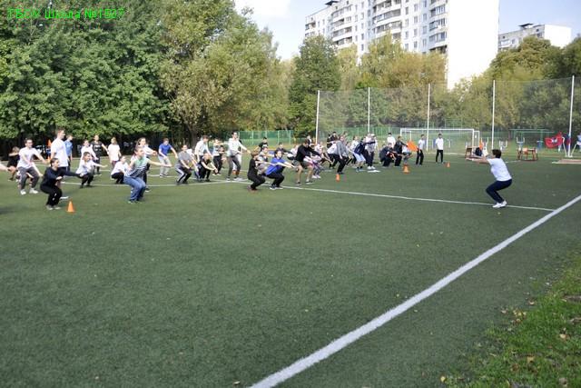 МАРШ !... Солнечная погода, праздничное открытие, бодрое настроение, друзья и болельщики, спортивный азарт, стремление быть сильными и здоровыми, – всё стало слагаемыми успешного спортивного фестиваля. На стадионе одновременно действовало 8 точек приема нормативов: прыжки с места; бег; подъем туловища; наклон вперед с прямыми ногами; метание мяча; сгибание и разгибание рук в упоре и др. Финальным и, наверное, самым тяжелым испытанием был кросс на 3 км. Кроме того, в школьном здании по адресу: ул. Профсоюзная д.142 к.5 проходили испытания по стрельбе из электронного оружия.