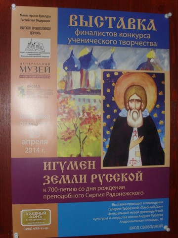 25 апреля 2014 года в музее им. Андрея Рублева открылась выставка лучших работ городского конкурса детского творчества «Игумен Земли Русской» Конкурс посвящен 700-летию преподобному Сергию Радонежскому.