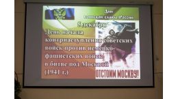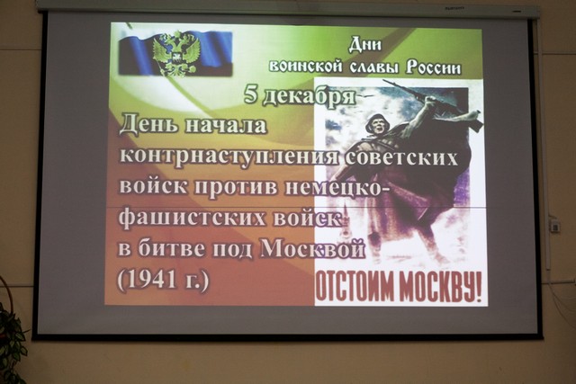 Традиционно в начале декабря ОШО № 865 принимает самых дорогих и всегда желанных гостей. 4 декабря 2015 года состоялось торжественное мероприятие, посвящённое Дню воинской славы России и 74-ой годовщине разгрома немецко-фашистских захватчиков под Москвой. И в этот знаменательный день учителя и ученики школы были рады видеть людей, которыми бесконечно гордятся – ветеранов 43 Армии ВОВ, ветеранов войны и бывших несовершеннолетних узников фашизма – жителей района Тёплый Стан!