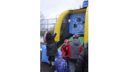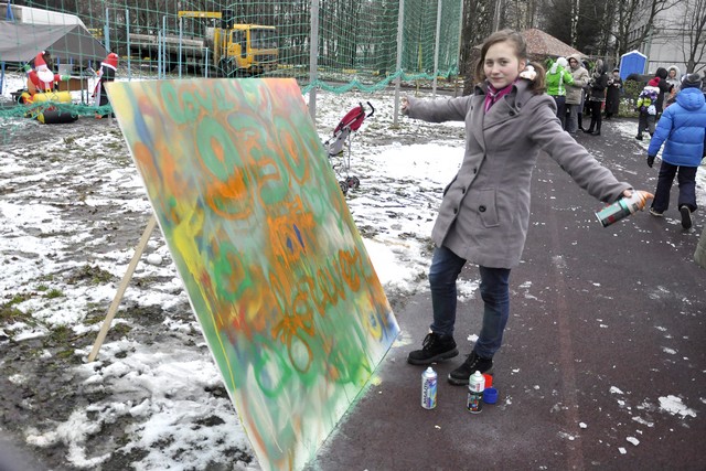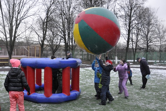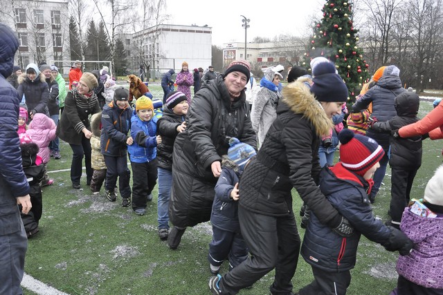 Результат: участвовали в конкурсе новогодних граффити; перетягивали «канат-сосиску»; играли в различные игры вместе с Веселыми Мимами; Скоморохом, Машей и Медведем; кидали мячи на меткость попадания в отверстия разных размеров; испытывали кувалдой свою силу и ловкость; встречали Трансформеров, а затем поддерживали их танец; играли в «кёрлинг» «хоккей»; бегали в эстафетах-корабликах и ходили в эстафетах «шаго-ступах»; забрасывали огромный мяч в большое кольцо; ели гречневую кашу, сладкую вату и пили горячий чай; общались с друзьями и коллегами из соседних ОШО и ОДШО; встречали деда Мороза и Снегурочку; водили хоровод у Ёлочки; зажигательно танцевали.