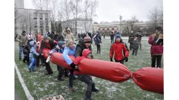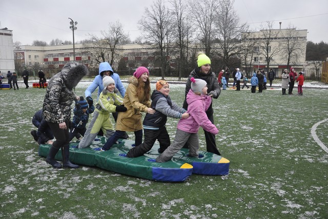 Результат: участвовали в конкурсе новогодних граффити; перетягивали «канат-сосиску»; играли в различные игры вместе с Веселыми Мимами; Скоморохом, Машей и Медведем; кидали мячи на меткость попадания в отверстия разных размеров; испытывали кувалдой свою силу и ловкость; встречали Трансформеров, а затем поддерживали их танец; играли в «кёрлинг» «хоккей»; бегали в эстафетах-корабликах и ходили в эстафетах «шаго-ступах»; забрасывали огромный мяч в большое кольцо; ели гречневую кашу, сладкую вату и пили горячий чай; общались с друзьями и коллегами из соседних ОШО и ОДШО; встречали деда Мороза и Снегурочку; водили хоровод у Ёлочки; зажигательно танцевали.