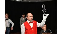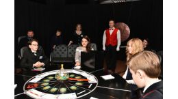 В зале было все, как в Нескучном саду: тот же черный стол с конвертами на нем, те же черные кресла, те же сосредоточенные лица знатоков, и, самое главное, та же необыкновенная атмосфера. Это заметил наш почетный приглашенный гость, магистр игры, давний игрок «Что? Где? Когда?» Овчинников Сергей Алексеевич, выступивший на нашей игре в качестве хранителя традиций. Во время музыкальных пауз выступали учащиеся гимназии со своими музыкальными номерами.