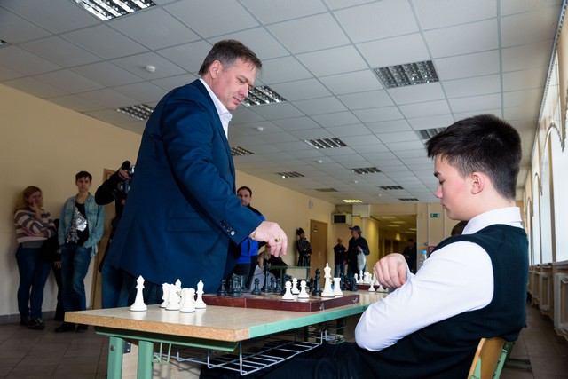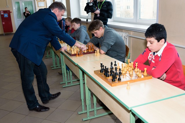 Вот и у нас 19 марта 2016 года в рамках фестиваля «Тёплый Конь» прошёл сеанс одновременной игры по шахматам, который проводил международный гроссмейстер, старший тренер сборных Москвы по шахматам, Заслуженный тренер России – Злочевский Александр Борисович. Огромное СПАСИБО мастеру за хороший урок и отличный пример великолепной игры для учащихся наших школ!