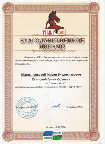 19 марта 2016 года в здании Российского государственного геологоразведочного университета (МГРИ-РГГРУ имени Серго Орджоникидзе) в рамках Фестиваля образовательных организаций районов Коньково и Теплый Стан состоялось выступление школьных команд КВН.