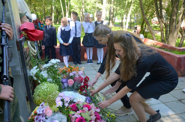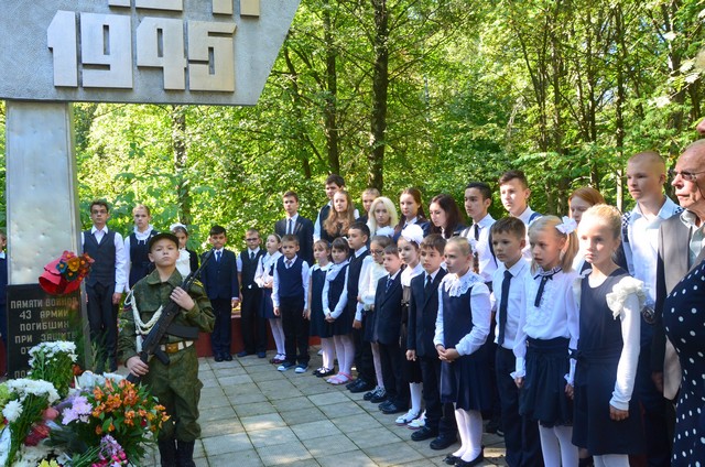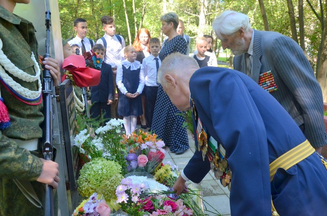 По нашей школьной традиции, в День Знаний, мы не устаём повторять слова благодарности тем, кто защищал нашу Родину в годы Великой Отечественной войны. Дорогие ветераны! Вам мы обязаны жизнью! Это вы отстояли наше детство, завоевали свободу и счастье для грядущих поколений! Низкий вам поклон! Мы любим вас! Мы помним о вас! Мы гордимся вами! А память о погибших воинах всегда будет жить в наших сердцах!