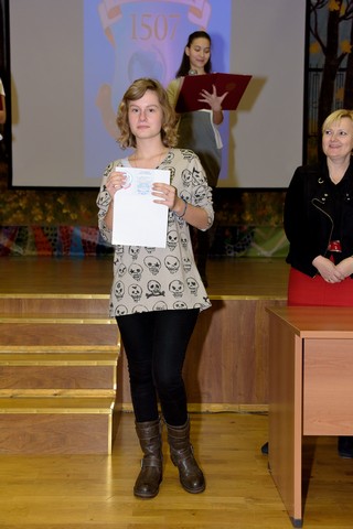 16 ноября 2016г в актовом зале гимназии проходил праздник «Гордость гимназии» чествования призеров и победителей Всероссийской и Московской Олимпиады Школьников, метапредметных олимпиад «Не прервётся связь поколений!» и «Музеи. Парки. Усадьбы», Межрайонного фестиваля «Моя талантливая семья»2015-2016 учебного года, а также активных членов ученического самоуправления.