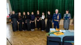 Перед конкурсом представители ветеранской организации 43 Армии и Совета ветеранов Теплого Стана провели «Уроки мужества» для учеников начальной школы с рассказом о защитниках Отечества района Теплый Стан, об обороне Москвы, показом знаменитых рисунков Ветерана ВОВ Монюшко Евгения Дмитриевича.